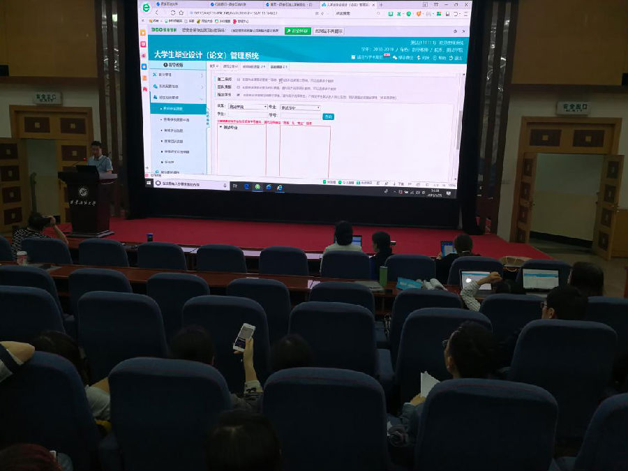 此次培訓(xùn)得到了教務(wù)處的大力支持,教務(wù)處實踐教學(xué)科劉曉東老師結(jié)合外國語學(xué)院外語專業(yè)特點,對外語專業(yè)畢業(yè)論文網(wǎng)上管理進行了詳細講解,并現(xiàn)場解答了指導(dǎo)老師提出的問題。