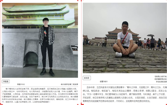 會(huì)計(jì)系學(xué)生第一黨支部李楊談到,作為一名當(dāng)代大學(xué)生黨員,我們要將個(gè)人理想和奮斗目標(biāo)與中華民族偉大復(fù)興的中國夢(mèng)結(jié)合起來,努力學(xué)習(xí)科學(xué)文化知識(shí),發(fā)揚(yáng)偉大五四精神,承擔(dān)起歷史賦予我們的使命,珍惜韶華,不負(fù)青春,在激情奮斗中綻放青春的光芒!