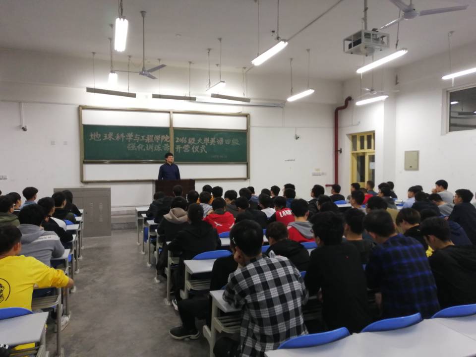 為進一步提升廣大同學對大學英語四級考試的重視度和應試能力,扎實推進2016級學風建設,4月11日晚,地球科學與工程學院在鄠邑校區(qū)B402教室舉行了2016級大學英語四級強化訓練營開營儀式,輔導員周毅華老師、2016級學生干部代表、黨員代表以及大學英語四級未通過的103 名同學參加活動。