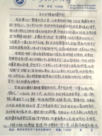 自3月5日以來,化學(xué)化工學(xué)院開展了“學(xué)習雷鋒做美德少年”的征文活動,26個團支部58名同學(xué)參加征文比賽,其中化工1704班的陳玉坤同學(xué)在文章中這樣寫到:學(xué)會體諒別人,學(xué)會勞動快樂,學(xué)會無私奉獻。生活中有許多小事需要我們?nèi)プ?。有可能去做的不是他,不是她,而是我們?/p>
