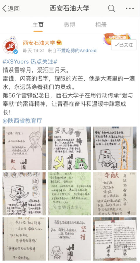 活動伊始,學(xué)生干部們在老食堂門口布置展示了雷鋒肖像和雷鋒生平故事,其積極姿態(tài)吸引了眾多同學(xué)觀看參與。學(xué)生干部們?yōu)橥瑢W(xué)們詳細(xì)講解了雷鋒生平事跡和雷鋒精神。隨后,部門成員們開始了“校園清潔活動”,大家分成了若干小組分散到學(xué)校的各個角落進行清潔活動。在活動成員們的渲染下,許多同學(xué)也投入到清潔行列。雷鋒精神時刻被提倡著,我們應(yīng)該讓雷鋒精神成為一種生活中的一部分,從小事做起,從身邊做起,使更多需要幫助的人得到幫助,讓我們的校園變得更美好。