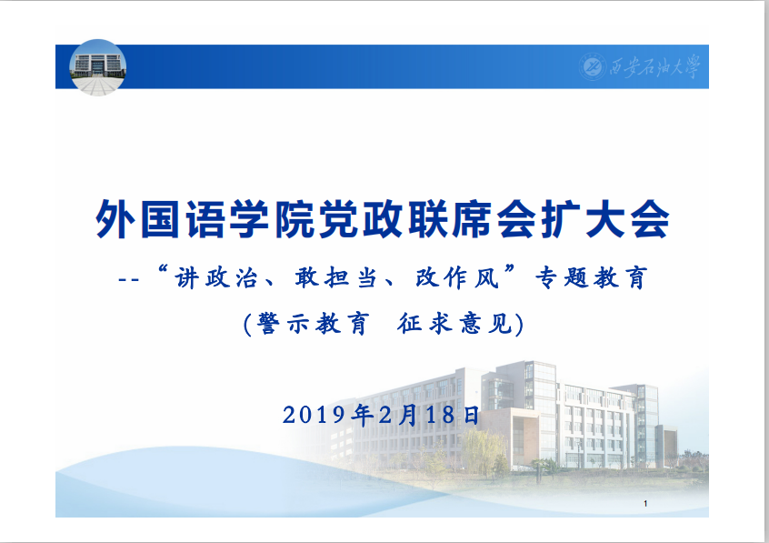 外國(guó)語(yǔ)學(xué)院召開(kāi)“講政治、敢擔(dān)當(dāng)、改作風(fēng)”專題教育學(xué)習(xí)會(huì)暨征求意見(jiàn)座談會(huì)