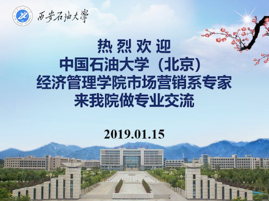 2019年1月15日,中國石油大學(北京)經(jīng)濟管理學院營銷系主任鄧秀煥、營銷專業(yè)負責人牛琦彬和營銷系主任助理余祖德來我校交流營銷專業(yè)培養(yǎng)經(jīng)驗。經(jīng)濟管理學院院長王君萍、企管系主任茍三勇、營銷專業(yè)帶頭人裴旭東,營銷專業(yè)的主要授課教師侯海青、程駿、侯萬宏、袁靜、黃聿舟和楊晶等,以及學生代表崔妮妮參加了交流會。