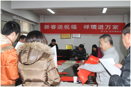 2019年1月14日,農(nóng)歷己亥新年來臨之際,由校工會和校書畫協(xié)會組織的“新春送祝福 祥瑞進(jìn)萬家”送春聯(lián)活動在校工會會議室進(jìn)行,來自我校書畫協(xié)會的三位書法愛好者現(xiàn)場為我校教職工義務(wù)書寫春聯(lián),送上校工會對全體教職工的新春祝福。校黨委副書記、校書畫協(xié)會會長雷西合也從百忙之中來到現(xiàn)場為大家書寫春聯(lián),我校教職工、離退休職工紛紛前來,現(xiàn)場歡聲笑語,一片祥和景象。