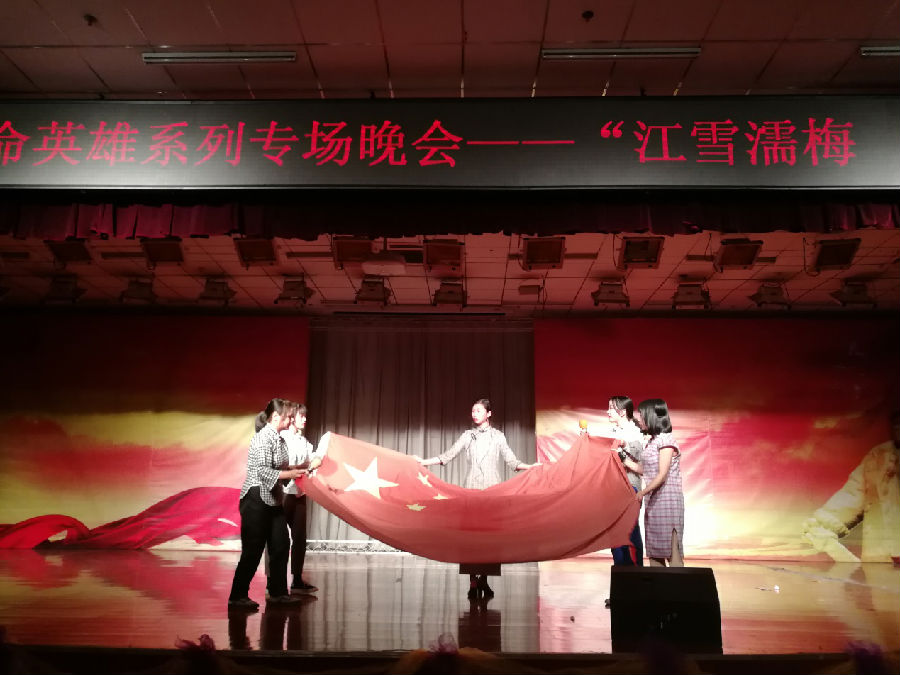 2018年12月15日晚19點地球科學與工程學院“江雪濡梅,風聲不歇”革命英雄系列話劇在鄠邑校區(qū)騰輝大學生活動中心成功演出。本場演出是由我院團委主辦,我院粉墨人生話劇社和勘探專業(yè)學生第二黨支部承辦。我院粉墨人生話劇社指導老師周毅華老師、兼職組織員張陽老師、全體黨員、預備黨員、入黨積極分子共400余人觀看了本場話劇。