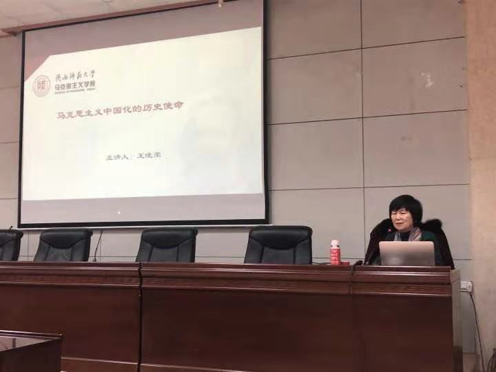 12月10日下午,由馬克思主義學院舉辦的“思政大講堂”系列學術(shù)報告會在雁塔校區(qū)會議中心第三會議室舉行,陜西師范大學馬克思主義學院王曉榮教授應(yīng)邀為我院師生作了以“馬克思主義中國化的歷史使命”為主題的報告。報告會由我院副院長張海濤主持,我院黨總支書記李淵及廣大師生參加了報告會。