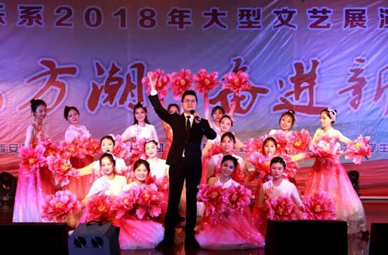 本場晚會由我系教師何云總策劃、宋淼老師協(xié)調(diào),田立、駱珞、寇麗麗、劉奕彤等幾位老師對具體節(jié)目進(jìn)行指導(dǎo)下完成。晚會在歌伴舞《中國的好時候》表演中正式拉開序幕,校工會教師舞蹈隊(duì)的原創(chuàng)作品《雨打芭蕉》展現(xiàn)了我校熱愛舞蹈的教工風(fēng)采;歌曲《Hello》/《彩虹》帶給我們無限的能量,讓我們勇敢前進(jìn);《石油大學(xué)賦》是由音樂系黨總支副書記張偉老師原創(chuàng),師生共同朗誦表達(dá)了對石油大學(xué)的無盡的情感與期望;《歲月金曲》、《京韻臉譜》、搖滾樂隊(duì)的《連奏曲目》等原創(chuàng)節(jié)目贏得了臺下陣陣掌聲;《百姓記得你》和《權(quán)御天下》更是展現(xiàn)了我系學(xué)生在聲樂及器樂方面的專業(yè)水平,表演極具感染力和沖擊力,引人入勝;女生小合唱的歌曲串燒《我們的青春》和田立老師演唱的《情牽梁家河》則是用民歌唱響了我們祖國改革開放40周年所取得的進(jìn)步和發(fā)展;最后晚會在大合唱《在燦爛陽光下》和校歌《輝煌明天》的歌聲中圓滿落下帷幕。