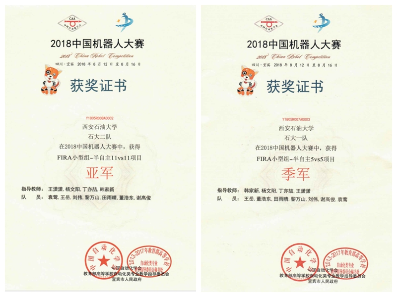 我校代表隊(duì)在FIRA小型組半自主5vs5項(xiàng)目賽中,經(jīng)過常規(guī)賽、加時(shí)賽、點(diǎn)球大戰(zhàn),成功小組出線。歷經(jīng)一天的緊張調(diào)試和兩天的激烈角逐,我校代表隊(duì)最終在FIRA小型組半自主11vs11項(xiàng)目和5vs5項(xiàng)目決賽中分別獲得亞軍和季軍。我校學(xué)子再次在國(guó)內(nèi)重要的賽場(chǎng)上發(fā)揮了高超的科學(xué)競(jìng)技水平,展現(xiàn)了良好的精神風(fēng)貌。