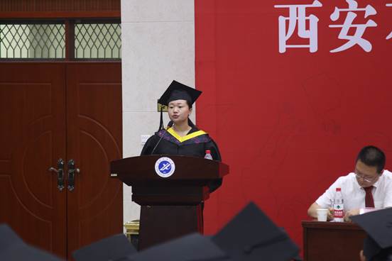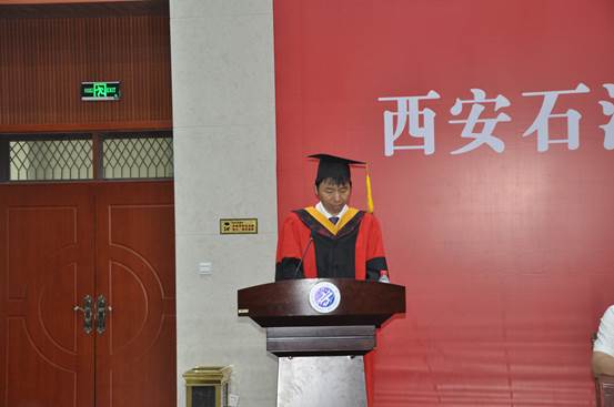 學(xué)位授予儀式在莊嚴(yán)的國(guó)歌聲中開幕。侯琦書記代表學(xué)院在儀式上發(fā)表了熱情洋溢的講話,他首先代表學(xué)院向圓滿完成學(xué)業(yè)并獲得學(xué)士學(xué)位的全體畢業(yè)生表示熱烈的祝賀!侯琦書記說,四年時(shí)光,學(xué)院見證了每一位同學(xué)的成長(zhǎng)與收獲,同時(shí),同學(xué)們也見證了學(xué)校獲批博士學(xué)位授予單位、鄠邑校區(qū)東大門的建成啟用、新操場(chǎng)的投入運(yùn)行等學(xué)校發(fā)展時(shí)刻。新時(shí)代中國(guó)對(duì)同學(xué)們而言既是挑戰(zhàn),也是施展才華的好機(jī)會(huì)。他對(duì)畢業(yè)生提出了四點(diǎn)希望和囑托:一是繼續(xù)弘揚(yáng)鐵人精神和石油精神,充分發(fā)揮自身優(yōu)勢(shì),以青年人應(yīng)有的責(zé)任和擔(dān)當(dāng)讓青春綻放光彩。二是堅(jiān)持對(duì)卓越的追求,以時(shí)不我待只爭(zhēng)朝夕的踏實(shí)精神實(shí)現(xiàn)人生目標(biāo)。三是激活正能量擁有好心態(tài),面對(duì)困難挫折時(shí)擁有好心態(tài)是轉(zhuǎn)變角色、適應(yīng)社會(huì)的關(guān)鍵。四是筑夢(mèng)人生,精彩一生。要敢于有夢(mèng)、善于筑夢(mèng)、勤于追夢(mèng),實(shí)現(xiàn)自己的人生價(jià)值,為祖國(guó)、為社會(huì)添磚加瓦,為母校、為父母增光添彩。