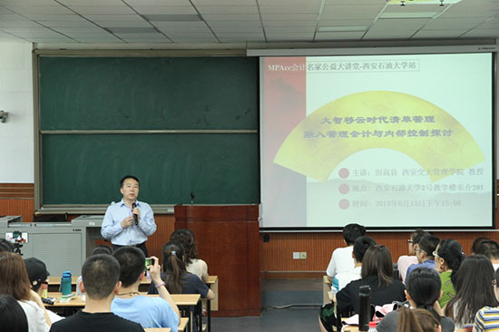 6月13日下午3點(diǎn),由中國會計(jì)學(xué)會和全國會計(jì)專業(yè)學(xué)位研究生教育指導(dǎo)委員會共同主辦、西安石油大學(xué)經(jīng)濟(jì)管理學(xué)院承辦的MPAcc會計(jì)名家公益大講堂,在雁塔校區(qū)東階202教室隆重開講。西安交通大學(xué)管理學(xué)院田高良教授蒞臨現(xiàn)場,為200多位師生帶來“大智移云時(shí)代清單管理融入管理會計(jì)與內(nèi)部控制探討”的主題講座。
