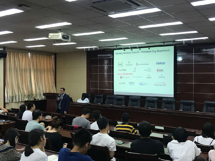 會(huì)后,Vamegh Rasouli博士在西階第五會(huì)議室為我校師生做了題為《Unconventional Shale Plays Exploration, Development and Production: Current State in the U.S. and Technology Transfer to China》(中文名稱是“頁(yè)巖油氣區(qū)的勘探、開發(fā)與生產(chǎn):美國(guó)現(xiàn)狀與向中國(guó)技術(shù)轉(zhuǎn)讓”)的學(xué)術(shù)報(bào)告。