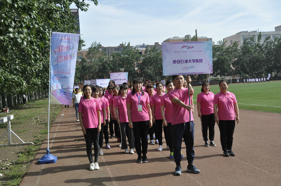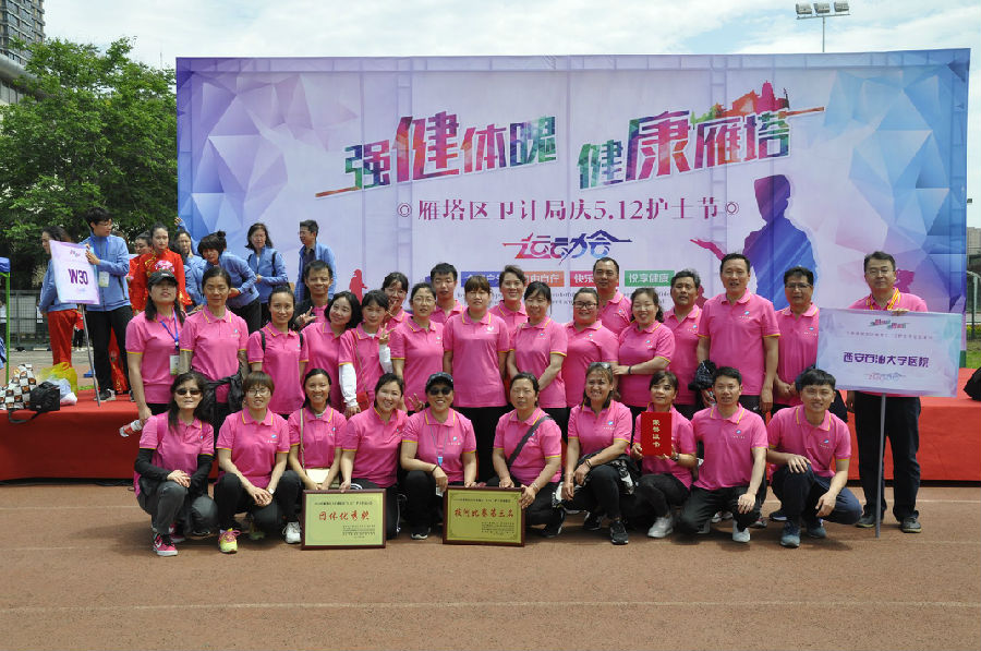 5月11日上午,為慶祝第107個國際護(hù)士節(jié),校醫(yī)院院職工在崔廣志院長的帶領(lǐng)下參加西安雁塔區(qū)衛(wèi)生與計劃生育局舉辦的慶?!?.12”護(hù)士節(jié)運(yùn)動會。