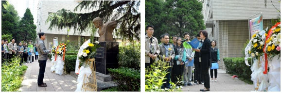 在“悼英雄,緬懷光輝事跡”環(huán)節(jié),在石油工程學(xué)院溫迪同學(xué)主持下,與會(huì)師生集體默哀,本科生代表葉楠帶領(lǐng)大家回顧了英雄事跡;石油工程學(xué)院、研究生院黨委書記馬勇、高榮芳,石油工程學(xué)院院長(zhǎng)周德勝、黨委副書記張建高、唐春雨烈士生前班主任老師李琪、學(xué)生管理辦公室主任孫會(huì)珠,研究生輔導(dǎo)員周鈺桐,本科生輔導(dǎo)員朱戰(zhàn)威、張楠、劉曉陽、嚴(yán)維博、孫浩哲等,同本科生、研究生黨員代表,研究生會(huì)代表一起,依次在春雨烈士塑像前行三鞠躬禮并獻(xiàn)花,表達(dá)對(duì)烈士的無限哀思和敬意。時(shí)在鄠邑校區(qū)上課的石油工程教師、唐春雨烈士生前同學(xué)徐波,也轉(zhuǎn)達(dá)了班級(jí)同學(xué)對(duì)烈士的無限緬懷。