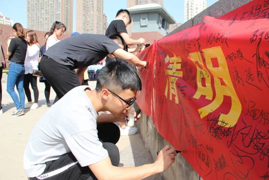 張偉副書記希望通過本次活動,同學(xué)們能夠獲得精神上的啟迪,靈魂上的震撼,在今后的學(xué)習(xí)中要傳承革命先烈的崇高精神和優(yōu)良作風(fēng),“不忘初心、牢記使命,無私奉獻(xiàn),努力拼搏”。張偉副書記用一首詩概括了本次清明祭掃活動:出生入死為國清,翠柏蒼松伴英靈。不忘初心傳承在,牢記使命警鐘鳴。櫛風(fēng)沐雨家國興,砥礪奮進(jìn)民族情。刺股懸梁勤為徑,乘風(fēng)破浪自鵬程。同學(xué)們受到極大鼓舞,紛紛表示希望能夠繼承革命先輩的優(yōu)良傳統(tǒng)。