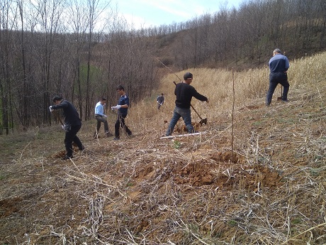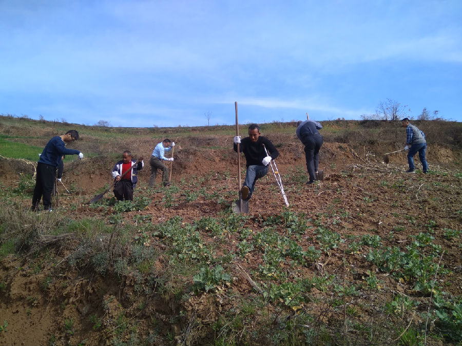 馬書記一行首先來(lái)到結(jié)對(duì)幫扶困難群眾王歲仔的家中,代表地學(xué)院向王歲仔送上了學(xué)院師生捐贈(zèng)的衣物兩包,并了解了他的近期生產(chǎn)生活情況。隨后,馬書記一行帶著提前購(gòu)買的核桃樹苗、鐵鍬等農(nóng)具,來(lái)到十多里外王歲仔位于老村的撂荒坡地,幫助王歲仔種植核桃樹苗。大家一起動(dòng)手,干勁十足,在兩畝多坡地上種植了一百余棵核桃樹苗。幫助王歲仔利用撂荒坡地種植經(jīng)濟(jì)林木是地學(xué)院精準(zhǔn)扶貧工作的一項(xiàng)具體舉措,為此,地學(xué)院提前聯(lián)系我校駐村扶貧干部董丙劍老師幫助購(gòu)買了核桃樹苗,考慮到王歲仔腿部有殘疾,無(wú)法從事體力勞動(dòng),學(xué)院此次專門組織教職工幫助其栽種樹苗。