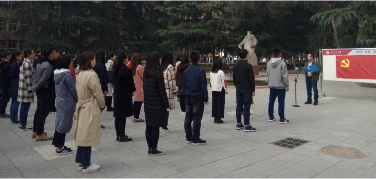 為扎實推進“兩學一做”學習教育常態(tài)化制度化,增強新黨員的黨性意識,3月22日上午,研究生院黨委在雁塔校區(qū)鐵人廣場為新黨員舉行了入黨集體宣誓儀式。研究生院黨委副書記范琦、組織員高黎及2017年底發(fā)展的110名研究生預(yù)備黨員參加儀式。