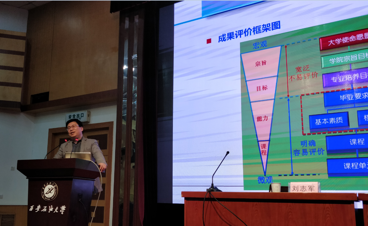 報告會上,劉志軍教授介紹了成果導(dǎo)向教育(Outcome based education,簡稱OBE)的深刻含義,詳細闡述了如何制定OBE理念的專業(yè)培養(yǎng)方案,內(nèi)容包括培養(yǎng)目標、畢業(yè)要求、成果評價、課程大綱的撰寫方法。劉教授的報告應(yīng)用數(shù)據(jù)、圖表等多種表達形式重點分析了學(xué)科、專業(yè)、課程之間的內(nèi)在關(guān)系和建設(shè)內(nèi)涵,并結(jié)合國內(nèi)外著名高校本科專業(yè)培養(yǎng)方案案例,闡述在成果導(dǎo)向教育理念下,本科專業(yè)人才體系的構(gòu)建和培養(yǎng)方案的制定要求。