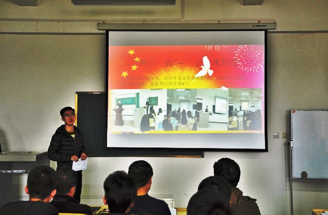 朱老師首先對述職匯報的相關要求進行了說明;接著,按照抽簽順序,第五學生黨支部書記趙東睿、第八學生黨支部書記張學聰、第四學生黨支部書記高偉、第九學生黨支部書記趙勃、第十一黨支部書記解聰和第二學生黨支部書記李鵬鉞分別作了述職匯報。匯報內(nèi)容主要圍繞支部基本情況、支部的建設(組織建設、思想建設、制度建設、作風建設等)、支部特色活動與創(chuàng)新、問題與不足、計劃與展望等方面展開。