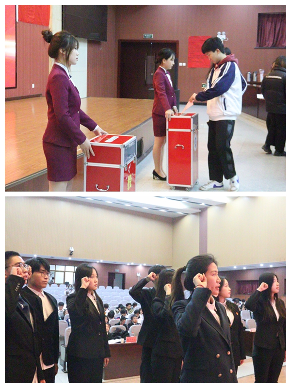 靳晨璐作《大會籌備工作報告》,并宣讀了學(xué)院第一屆團(tuán)委屆內(nèi)調(diào)整決議,聽取了學(xué)院團(tuán)委、學(xué)生會上一年度工作報告,大會同時通過了大會選舉辦法和監(jiān)票計票名單。隨后,通過無記名投票,差額選舉出新一屆學(xué)生委員會團(tuán)成員。增補(bǔ)團(tuán)委委員、新當(dāng)選學(xué)生委員會委員面向團(tuán)旗進(jìn)行了莊嚴(yán)宣誓。