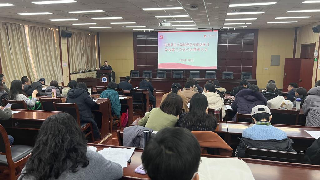 1月8日上午,馬克思主義學(xué)院黨總支在雁塔校區(qū)會(huì)議中心第五會(huì)議室召開傳達(dá)學(xué)習(xí)學(xué)校第三次黨代會(huì)精神大會(huì)。學(xué)院領(lǐng)導(dǎo)班子、全體教職工共50余人參加會(huì)議,會(huì)議由黨總支書記張偉主持。