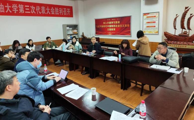 為持續(xù)深入學(xué)習(xí)貫徹習(xí)近平新時(shí)代中國(guó)特色社會(huì)主義思想和黨的二十大精神,進(jìn)一步落實(shí)中國(guó)共產(chǎn)黨西安石油大學(xué)第三次代表大會(huì)要求,深化本科教育教學(xué)改革,推動(dòng)學(xué)校本科教育高質(zhì)量發(fā)展,全力做好本科教育教學(xué)審核評(píng)估評(píng)建工作,根據(jù)學(xué)?!蛾P(guān)于在全校開(kāi)展本科教育教學(xué)思想大討論活動(dòng)的通知》要求,經(jīng)濟(jì)管理學(xué)院于1月12日上午召開(kāi)本科教育教學(xué)思想大討論會(huì)議。會(huì)議邀請(qǐng)西安科技大學(xué)管理學(xué)院副院長(zhǎng)史玉芳教授線上分享了審核評(píng)估迎評(píng)促建工作經(jīng)驗(yàn)以及學(xué)術(shù)型人才培養(yǎng)舉措。學(xué)院黨委書(shū)記王宏衛(wèi),院長(zhǎng)王君萍,以及各系主任、專(zhuān)業(yè)負(fù)責(zé)人、辦公室主任參加會(huì)議。會(huì)議由副院長(zhǎng)吳勛主持。