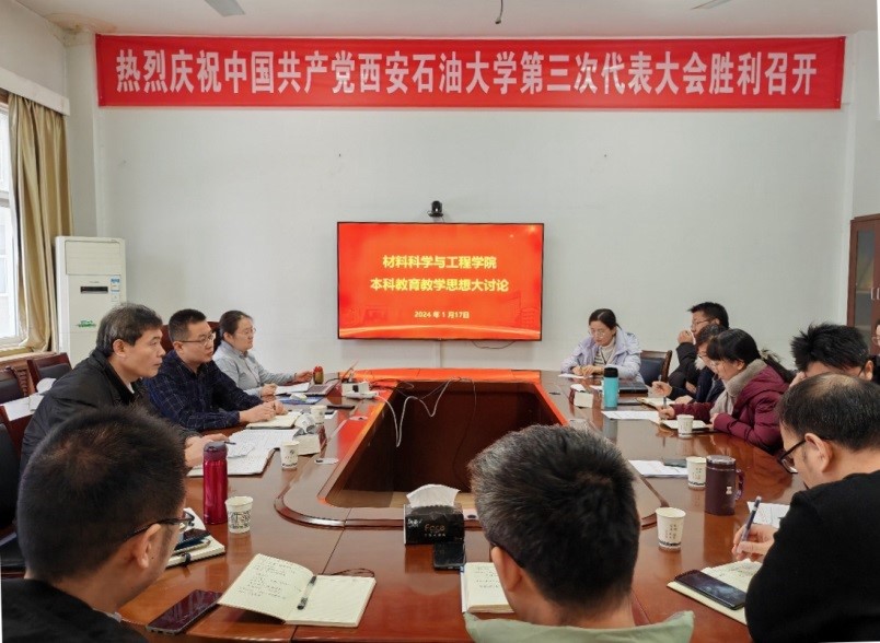 為持續(xù)深入開展學(xué)習(xí)貫徹習(xí)近平新時(shí)代中國(guó)特色社會(huì)主義思想,全面學(xué)習(xí)貫徹黨的二十大精神,進(jìn)一步落實(shí)中國(guó)共產(chǎn)黨西安石油大學(xué)第三次代表大會(huì)報(bào)告任務(wù)與目標(biāo),根據(jù)《西安石油大學(xué)關(guān)于開展本科教育教學(xué)思想大討論活動(dòng)的通知》,1月17日下午,材料科學(xué)與工程學(xué)院組織在第四實(shí)驗(yàn)樓312會(huì)議室召開本科教育教學(xué)思想大討論研討會(huì)。學(xué)院書記、副院長(zhǎng),各系、中心、辦公室主任,專業(yè)帶頭人,各系支部書記,學(xué)院教學(xué)督導(dǎo)等20多人參加,會(huì)議由學(xué)院黨委書記林紅先主持。
