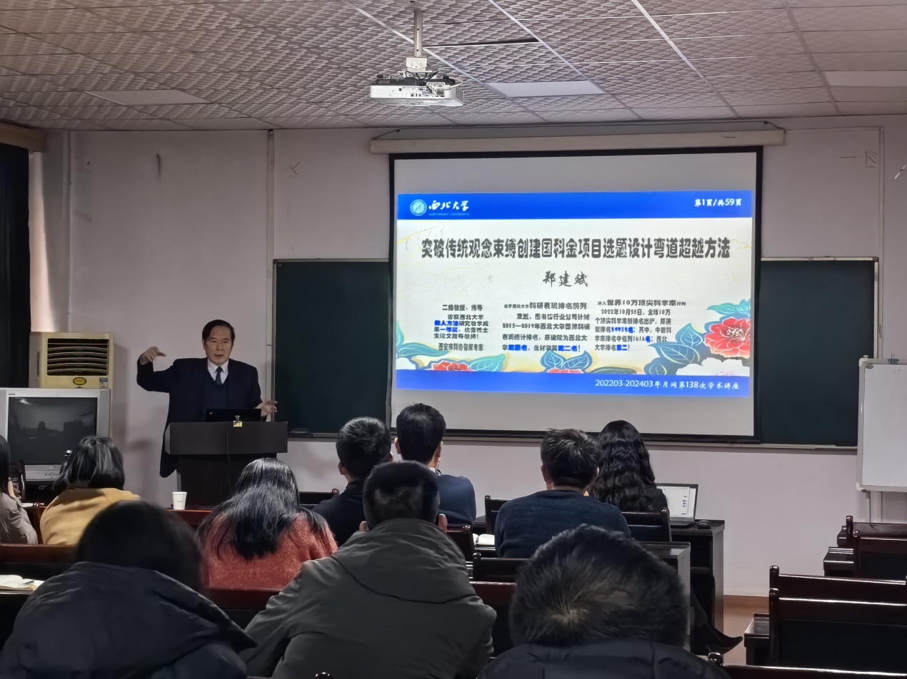 2024年2月25日下午,機(jī)械工程學(xué)院邀請(qǐng)西北大學(xué)鄭建斌教授在雁塔校區(qū)4號(hào)實(shí)驗(yàn)樓418會(huì)議室為申報(bào)國(guó)家自然基金的教師作題為“突破傳統(tǒng)觀念束縛創(chuàng)建國(guó)家自科項(xiàng)目申請(qǐng)書(shū)的彎道超越撰寫(xiě)方法”的報(bào)告。報(bào)告會(huì)由院長(zhǎng)竇益華教授主持。