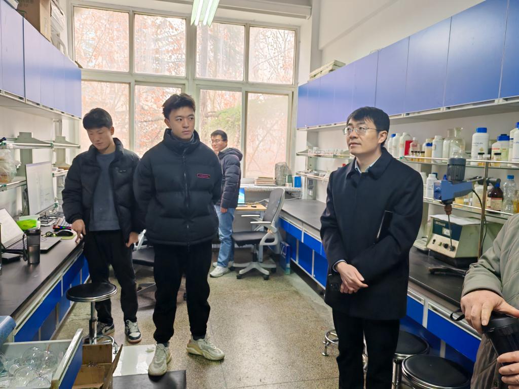 檢查過程中,高小明一行對學(xué)院每個(gè)科研實(shí)驗(yàn)室進(jìn)行了詳細(xì)檢查,并現(xiàn)場查看了安全臺(tái)賬記錄、?;吩噭┑氖褂玫怯洝毫馄康谋9?、易制毒試劑的保存,并和研究生同學(xué)進(jìn)行了交流和溝通李善建詳細(xì)了解了目前各科研實(shí)驗(yàn)室運(yùn)行情況、實(shí)驗(yàn)臺(tái)分布和各位導(dǎo)師科研工作進(jìn)展情況。