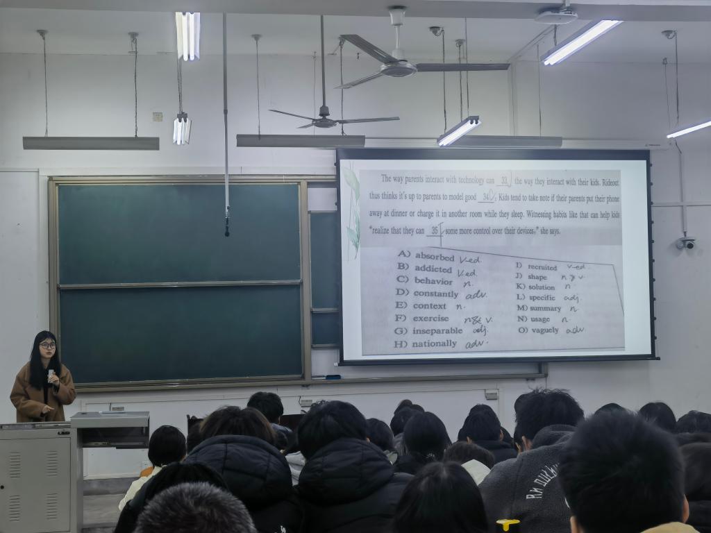 為增強(qiáng)大一學(xué)生對(duì)英語學(xué)習(xí)的重視程度,不斷完善學(xué)院的學(xué)業(yè)指導(dǎo)體系,學(xué)院2023級(jí)英語四級(jí)動(dòng)員會(huì)在邑校區(qū)A114室舉行。會(huì)上,盧筱佳以新能源行業(yè)的就業(yè)形勢(shì)和當(dāng)前畢業(yè)生就業(yè)困境為切入點(diǎn),結(jié)合學(xué)院往屆畢業(yè)生的求職案例,強(qiáng)調(diào)了通過英語四級(jí)的重要性和必要性,鼓勵(lì)同學(xué)們要樹立信心、主動(dòng)規(guī)劃、認(rèn)真準(zhǔn)備,在新學(xué)期里要持續(xù)加強(qiáng)英語課程的學(xué)習(xí)。同時(shí),盧筱佳介紹了學(xué)院晚自習(xí)英語加強(qiáng)訓(xùn)練和學(xué)院四級(jí)模擬考試的相關(guān)安排,建議同學(xué)們要珍惜每一次機(jī)會(huì),利用好周圍資源,熟悉四級(jí)考試流程,感受考場(chǎng)氛圍,掌握考試時(shí)間分配,及時(shí)解決學(xué)習(xí)困惑。隨后,能材2202班王茜雯從試卷結(jié)構(gòu)、備考經(jīng)驗(yàn)、應(yīng)試技巧、APP/網(wǎng)課推薦等方面進(jìn)行了分享,并針對(duì)同學(xué)們的提問進(jìn)行了耐心細(xì)致的解答。能科2201班戴傳裕分享了自己的四級(jí)學(xué)習(xí)經(jīng)驗(yàn),從興趣到愛好,從單詞積累到聽力培養(yǎng),最后到高分通過英語四級(jí)并取得聽力滿分的成績,詳細(xì)交流了自己的學(xué)習(xí)體會(huì)。