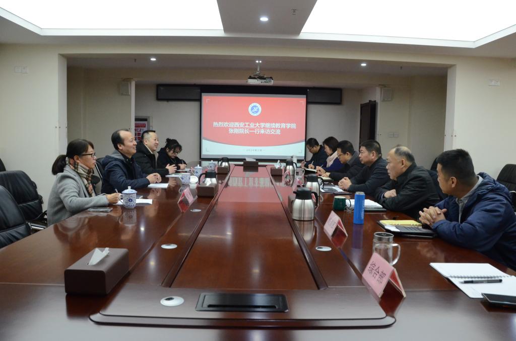 3月6日上午,西安工業(yè)大學繼續(xù)教育學院直屬黨支部書記、院長張剛一行四人來我院交流座談。座談會在我校明德校區(qū)培訓中心北樓第一會議室舉行,由我院黨總支書記耿嶺主持。副院長吳民生、劉小波以及相關部室負責人參加了座談。