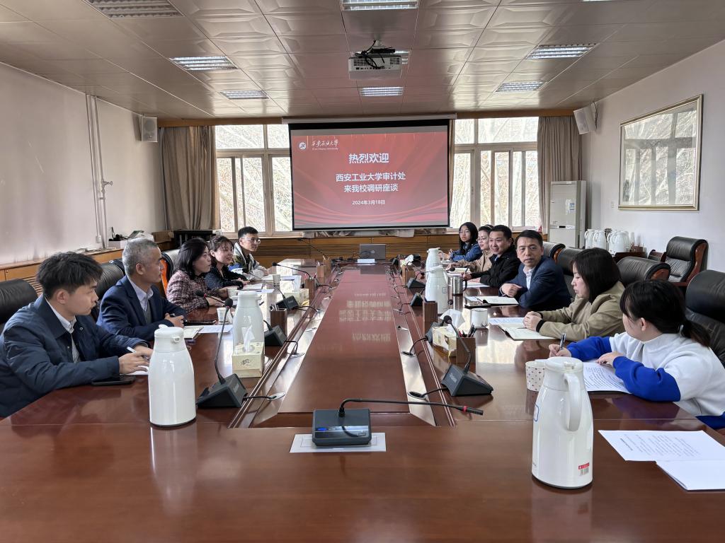 2024年3月18日下午,西安工業(yè)大學(xué)審計(jì)處處長(zhǎng)黨江燕一行5人到我校調(diào)研交流。我校審計(jì)處全體人員參加座談會(huì),處長(zhǎng)李國(guó)柱對(duì)西安工業(yè)大學(xué)審計(jì)處同仁的來(lái)訪(fǎng)表示熱烈歡迎。