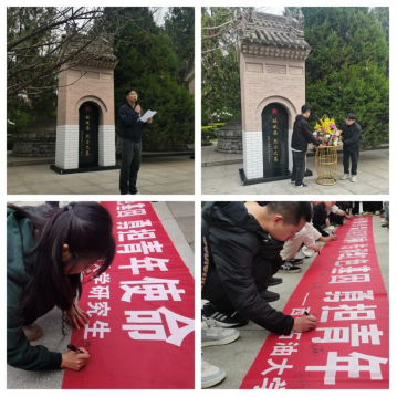 天地英雄氣,千秋尚凜然。全體師生代表來到偉大的愛國主義者、著名的教育家、政治活動家杜斌丞烈士墓碑前,在校團委李政老師主持下進行了祭奠。大家回顧了杜斌丞先生為探索救國救民道路而走過的不平凡革命歷程,以及先生與我校的歷史淵源。同學(xué)們紛紛表示,前進道路不可能一帆風(fēng)順,宏偉藍(lán)圖不可能一蹴而就。大家不僅要銘記烈士的遺志,弘揚英烈的精神,更要踔厲奮發(fā)、勇毅前行,不斷為強國建設(shè)、民族復(fù)興偉業(yè)添磚加瓦、增光添彩,把革命先烈為之奮斗、為之犧牲的偉大事業(yè)奮力推向前進。隨后,全體師生代表在橫幅上鄭重地簽上了自己的名字。