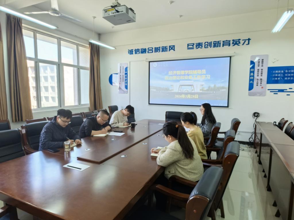 為深入學(xué)習(xí)貫徹全國兩會(huì)精神、學(xué)校第三次黨代會(huì)和2024年學(xué)校工作會(huì)議精神,3月28日,經(jīng)濟(jì)管理學(xué)院學(xué)生工作干部在鄠邑校區(qū)崇文樓305辦公室開展集中學(xué)習(xí)交流,學(xué)院黨委副書記王剛主持會(huì)議。