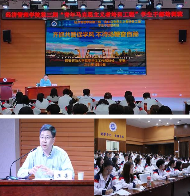 4月10日,經(jīng)濟管理學(xué)院第三期“青年馬克思主義者培養(yǎng)工程”學(xué)生干部培訓(xùn)班第二講在鄠邑校區(qū)崇文樓就業(yè)指導(dǎo)中心多功能廳舉行。黨委學(xué)生工作部(處)部(處)長、就業(yè)指導(dǎo)中心主任王亮應(yīng)邀主講。