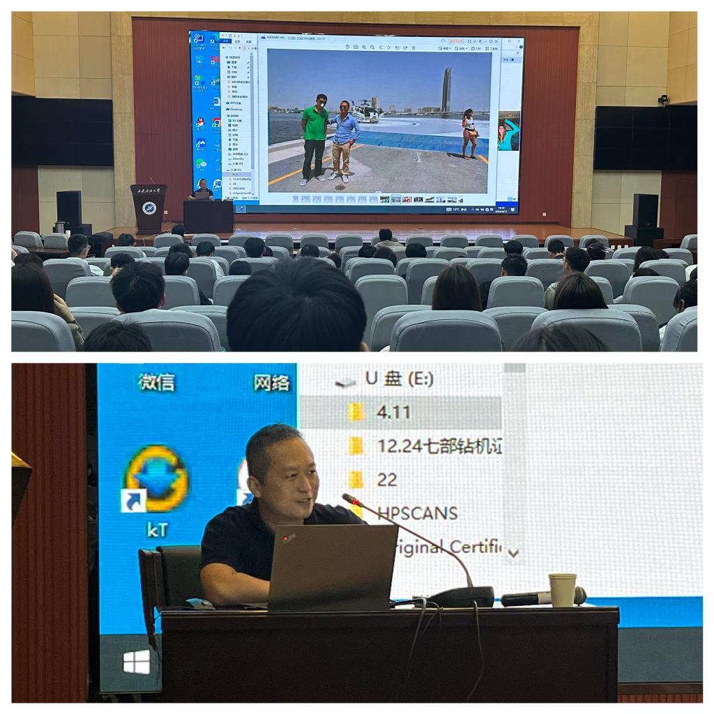 講座中,武也涵用風(fēng)趣幽默的語(yǔ)言及一張張精彩的照片講述了自己由一名內(nèi)地大學(xué)生通過(guò)游輪攝影師的工作機(jī)會(huì)到海外工作生活、轉(zhuǎn)行到石油行業(yè)、最終創(chuàng)業(yè)的人生心路歷程。在與同學(xué)們分享的過(guò)程中,武也涵告訴即將走上工作崗位及未來(lái)要面臨工作選擇的學(xué)子們,在面對(duì)職業(yè)生涯規(guī)劃和選擇時(shí),不要自我設(shè)限,確定人生方向后,要通過(guò)各種方式實(shí)現(xiàn)自己的目標(biāo)。