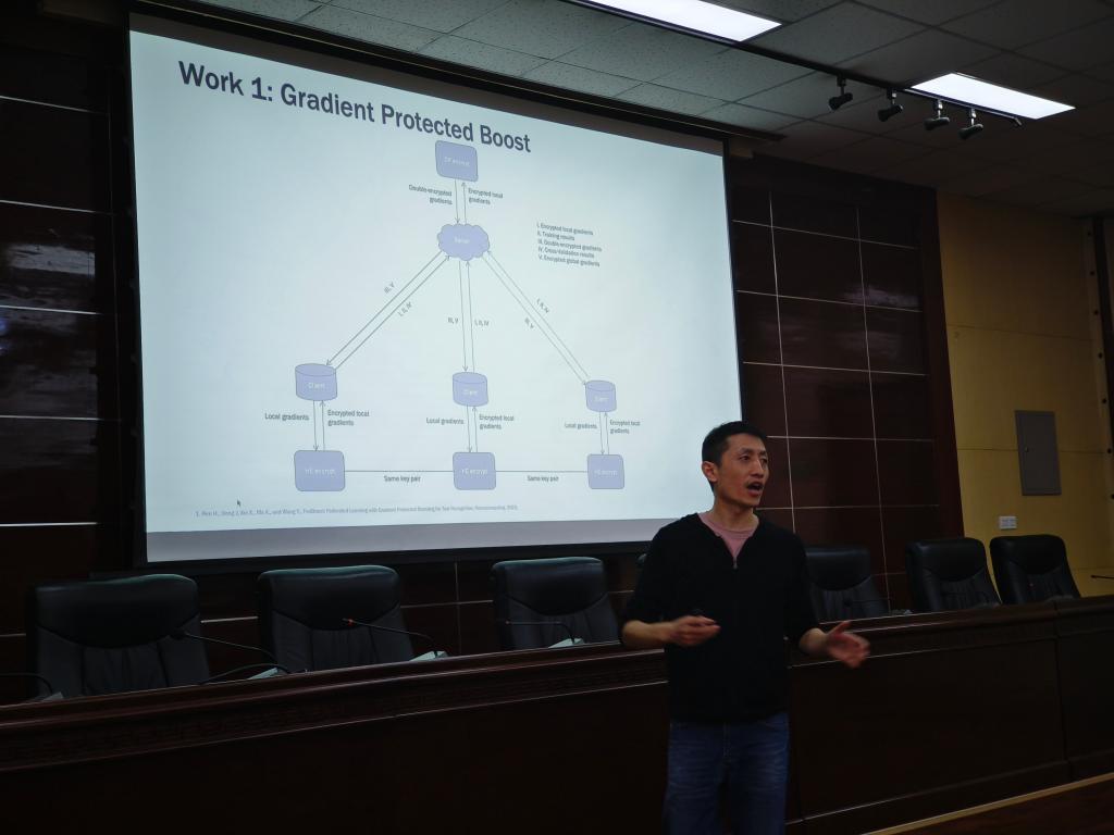 學(xué)術(shù)沙龍第一講由英國(guó)杜倫大學(xué)助理教授鄧晶晶主講。鄧晶晶教授介紹了研究團(tuán)隊(duì)在聯(lián)邦學(xué)習(xí)(Federated Learning, FL)領(lǐng)域的三項(xiàng)重要研究成果,即保護(hù)梯度的聯(lián)邦學(xué)習(xí)增強(qiáng)算法、生成回歸神經(jīng)網(wǎng)絡(luò)(Generative Regression Neural Network, GRNN)的新型數(shù)據(jù)泄露攻擊方法和梯度泄露防御技術(shù)。以上三項(xiàng)研究工作為聯(lián)邦學(xué)習(xí)領(lǐng)域帶來了重要的技術(shù)進(jìn)步。通過FedBoosting算法,研究團(tuán)隊(duì)不僅解決了非IID數(shù)據(jù)的泛化問題,還提高了模型的安全性和效率。GRNN的提出揭示了聯(lián)邦學(xué)習(xí)系統(tǒng)中潛在的數(shù)據(jù)泄露風(fēng)險(xiǎn),并提供了一種新的攻擊方法。密鑰鎖模塊的引入,則為保護(hù)模型架構(gòu)免受梯度泄露提供了一種有效的解決方案。這些成果將對(duì)聯(lián)邦學(xué)習(xí)的實(shí)際應(yīng)用和隱私保護(hù)產(chǎn)生深遠(yuǎn)影響。