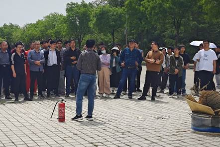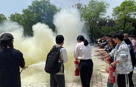 隨后,保衛(wèi)處副處長袁坤向全體參訓(xùn)人員詳細講解滅火器材種類、使用方法等消防安全知識,并進行現(xiàn)場滅火示范操作。參訓(xùn)師生根據(jù)動作要領(lǐng)完成滅火器滅火實操演練。