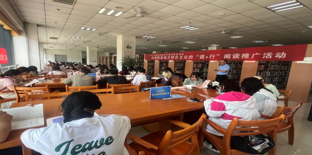 514日西安石油大學(xué)圖書館聯(lián)合陜西民間藝術(shù)保護(hù)與文創(chuàng)設(shè)計科普基地、西安石油大學(xué)團(tuán)委在鄠邑校區(qū)圖書館舉辦傳播陜西地方特色文化的“讀+行”閱讀推廣活動啟動儀式暨首次活動,吸引了100余名大學(xué)生參加。
