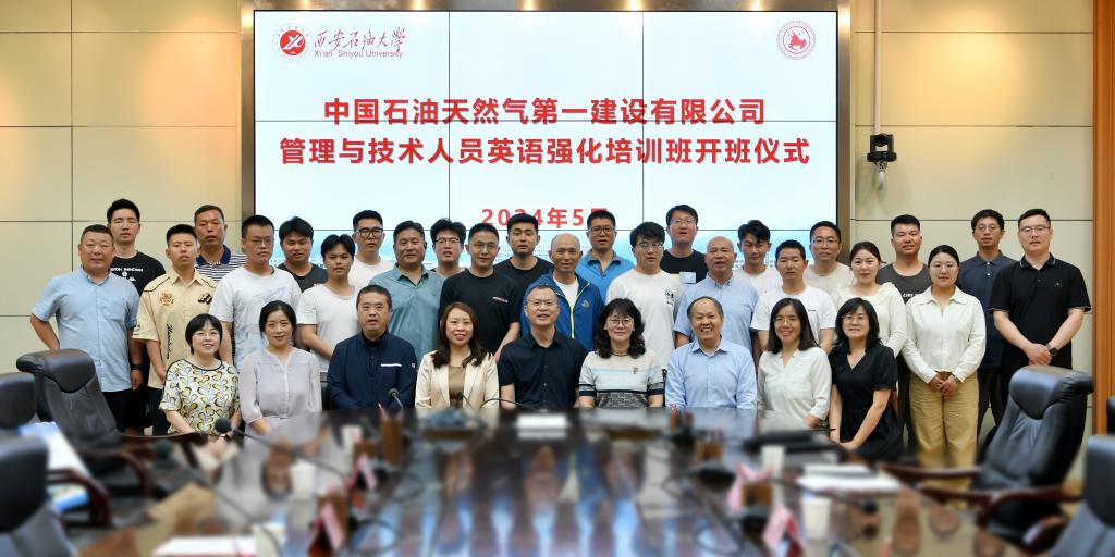 5月17日上午,外國語學院在雁塔校區(qū)會議中心第二會議室舉行了中國石油天然氣第一建設(shè)有限公司“國際合作工程技術(shù)與管理人員英語強化培訓班”開班儀式。中國石油天然氣第一建設(shè)有限公司第五分公司經(jīng)理常曉鋒、總經(jīng)濟師汪洋、學院黨委書記田虹霞、副院長劉輝、MTI中心主任袁森、部分任課教師及全體培訓學員參加。
