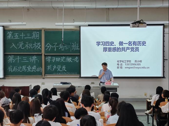為加強黨史、國史、改革開放史、社會主義發(fā)展史教育,弘揚以愛國主義為核心的民族精神和以改革創(chuàng)新為核心的時代精神,5月22日,經濟管理學院第五十三期入黨積極分子培訓班第十三講于鄠邑校區(qū)博覽樓239教室舉行。本次黨課由化學化工學院黨委書記高小明主講,第五十三期全體入黨積極分子參加。