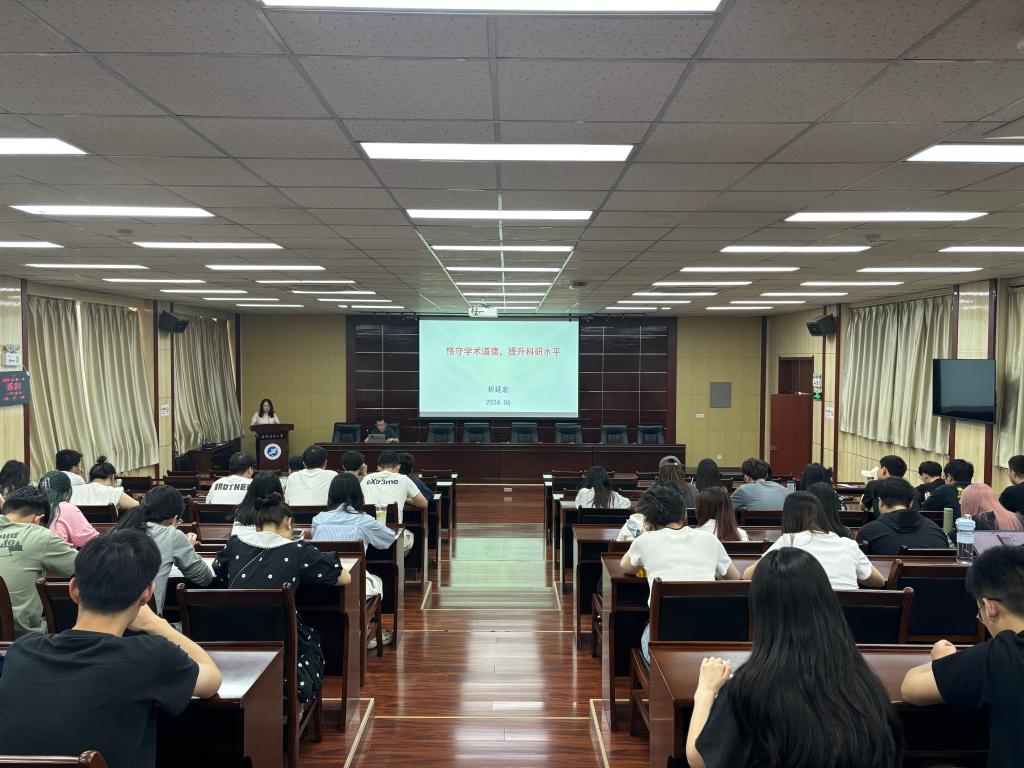 為提高研究生的學術素養(yǎng),維護學術誠信,加強學風建設,根據(jù)2024年研究生學風建設主題教育暨學術月活動安排,6月6日下午,研究生工作部在雁塔校區(qū)第五會議室組織召開“恪守學術道德,提升科研水平”主題報告會,報告會邀請我校理學院副院長折延宏教授主講,研究生工作部宋亞文主持,各學院130余名研究生代表現(xiàn)場參加了報告會。