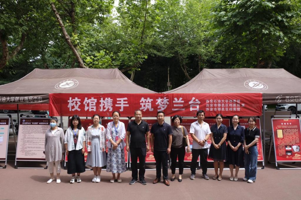 會(huì)后,鄠邑區(qū)檔案館館長(zhǎng)葛紅衛(wèi)一行參觀了校史館。參觀結(jié)束后,雙方聯(lián)合開展了“校館攜手,筑夢(mèng)蘭臺(tái)‘6·9’國(guó)際檔案日主題宣傳”活動(dòng),重點(diǎn)對(duì)《檔案法實(shí)施條例》、畢業(yè)生檔案辦理流程和檔案征集活動(dòng)進(jìn)行了宣傳?;顒?dòng)在鄠邑校區(qū)B區(qū)食堂門前舉行。