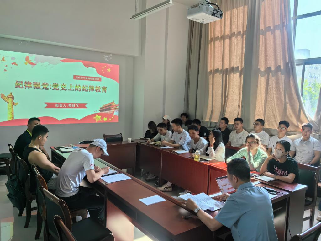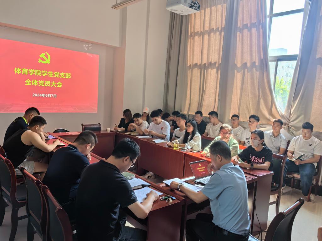 6月7日下午,體育學院學生黨支部在鄠邑校區(qū)東操場208會議室召開全體黨員大會,開展黨支部學習教育活動。學院黨總支書記茍毅飛全程參加指導并講授紀律黨課。會議由黨支部書記侯陽主持,全體研究生、本科生黨員參加會議。