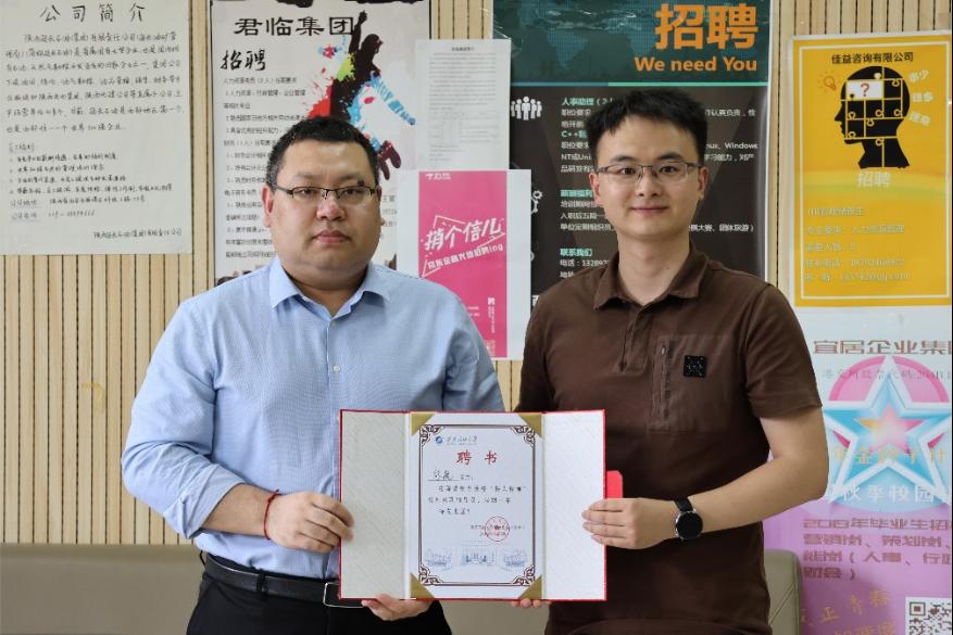 在交流中,史陽對立信會計師事務(wù)所在學(xué)院班級建設(shè)和就業(yè)工作等方面給予的大力支持表示感謝,他著重介紹了2024屆財會專業(yè)畢業(yè)生的人數(shù)規(guī)模、班級建設(shè)、學(xué)生獲獎等基本情況,誠摯邀請企業(yè)專家經(jīng)常到學(xué)校分享行業(yè)經(jīng)驗(yàn),并為張航頒發(fā)了“鐵人精神”校外兼職輔導(dǎo)員聘書。