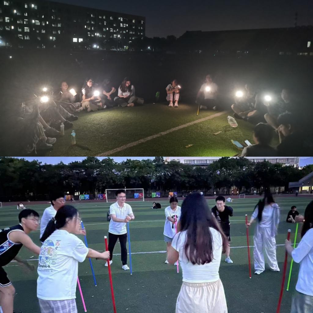 畢業(yè)季“星光素拓”活動。6月17日,一場別開生面的“星光素拓”活動在鄠邑校區(qū)東操場舉行。通過一系列富有趣味性的素拓項目,旨在營造溫馨、歡樂的畢業(yè)氛圍?!肮奈枞诵摹表椖客ㄟ^團隊協(xié)作,共同控制一面大鼓顛球,讓參與者在游戲中深刻體驗到團隊協(xié)作的重要性?!安坏股帧表椖扛切枰獏⑴c者的默契配合,在保持PVC管不倒的情況下,共同完成一系列動作。這一項目不僅考驗了參與者的默契程度,還鍛煉了他們的平衡能力和反應速度?!皳艄膫骰ā边@一經典游戲也融入到了本次素拓活動中。隨著鼓聲的響起,“花朵”在參與者之間傳遞,緊張而刺激的氛圍讓現(xiàn)場觀眾紛紛屏息凝神。當鼓聲停止時,拿到“花朵”的參與者需要表演節(jié)目?!靶枪釱TV”環(huán)節(jié)將素拓活動推向了最高潮。在星光下,畢業(yè)生們紛紛拿起話筒,用歌聲表達了對未來的憧憬和期待。他們或獨唱、或合唱,用音樂傳遞著青春的熱情與活力。此次星光素拓活動不僅為畢業(yè)生們提供了一個展示自我、放松心情的平臺,還讓他們在游戲中增強了團隊協(xié)作能力和溝通能力。通過參與這些富有趣味性和挑戰(zhàn)性的素拓項目,畢業(yè)生們更加珍惜彼此之間的友誼和共同度過的美好時光。