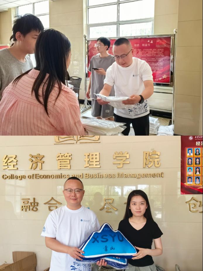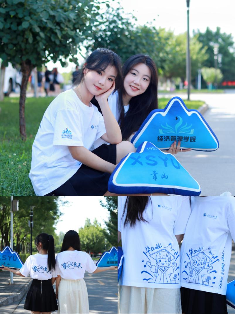 “被愛好似有靠山”,用畢業(yè)禮物承載祝福。經濟管理學院為每位畢業(yè)生贈送了“靠山”抱枕和紀念短袖。抱枕采用溫馨的藍色調,象征著青春的寧靜與深沉。藍色為?;盏念伾?,XSYU是西安石油大學的縮寫,1951為建校時間,藍色、XSYU、1951這三種元素,以及經濟管理學院院徽這些主體元素都是學子和學校、學院情感的紐帶,緊緊將學子和學校聯(lián)系在一起。山峰型的抱枕寓意著穩(wěn)固的支持和堅實的后盾,跨越千山萬水,無論身處何地,西安石油大學永遠是每一位學子的靠山。這款靠山抱枕,不僅是一款溫暖的抱枕,也是一種心靈的寄托,更是一種學子和學校情感的紐帶和回憶的載體。希望在未來的工作和生活中每一位學子都能從中找到一份慰藉和力量,更加堅定地走向未來!