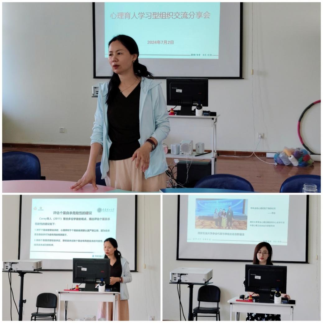根據學生心理成長指導中心倡導的“一人學習,眾人受益”原則,每位外出參加會議或培訓的老師,均需在校內進行分享。2024年7月2日,學生心理成長指導中心在鄠邑校區(qū)崇文樓427室舉辦了心理育人學習型組織活動——“第十六次全國心理衛(wèi)生學術大會”參會分享。全體專職心理老師和部分院(系)心理專干老師參加了本次分享交流會。