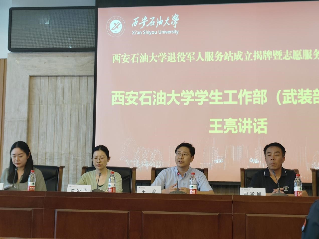 王亮在揭牌儀式中表示,學校將通過退役軍人服務站平臺,召集一批優(yōu)秀的退役大學生及擬應征入伍的在校生,組建起一支充滿活力的隊伍,全力打造有黨味、有軍味、有情味、有鐵人精神之味的“退役軍人之家”,培育先進典型,樹立學院軍人榜樣,形成西石大的獨特品牌。同時,也希望廣大退役大學生士兵能夠繼續(xù)保持“離軍不離黨、退役不褪色”的本色,不斷踐行“傳承軍魂、奉獻社會、勇于擔當、團結奮斗、崇尚榮譽”的退役軍人志愿服務精神,帶動廣大青年爭做“四實一新”好青年。