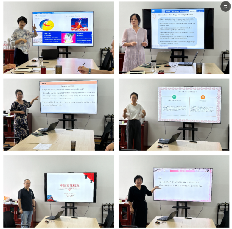 為認(rèn)真貫徹落實(shí)習(xí)近平總書記關(guān)于學(xué)校思想政治理論課的重要論述,加強(qiáng)高素質(zhì)、創(chuàng)新型教師隊(duì)伍建設(shè),深化課程育人質(zhì)量改革,結(jié)合《中共陜西省委辦公廳關(guān)于印發(fā)〈全國“大思政課”綜合改革試驗(yàn)區(qū)陜西省實(shí)施方案〉的通知》(陜辦字〔2023〕54號)精神,按照西安石油大學(xué)關(guān)于開展2024年思政課程課程思政教師 “大練兵”主題活動(dòng)的通知要求,外國語學(xué)院于7月8日下午在華油能源樓727舉辦了課程思政“大練兵”講課比賽,學(xué)院黨委書記張建高、副院長陳武、大學(xué)外語第一教學(xué)部黨支部書記付俊芳、大學(xué)外語第二教學(xué)部主任彭健、英語系主任鐘澤波、翻譯系主任秦艷霞、俄語系黨支部書記李娜、多語種教學(xué)部主任陳旭參加了本次比賽。
