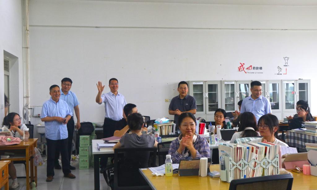 為了深入了解暑期考研留校學(xué)生的思想、學(xué)習(xí)和生活狀況,切實(shí)做好留校學(xué)生的安全管理和教育服務(wù)工作,7月24日上午,理學(xué)院黨委書記席利哲,院長傅海威,副書記楊富民,副院長陳國祥,教師代表張旋,輔導(dǎo)員龐波一行前往鄠邑校區(qū)考研自習(xí)室開展了慰問活動,為留校學(xué)生送去了溫暖與關(guān)懷。